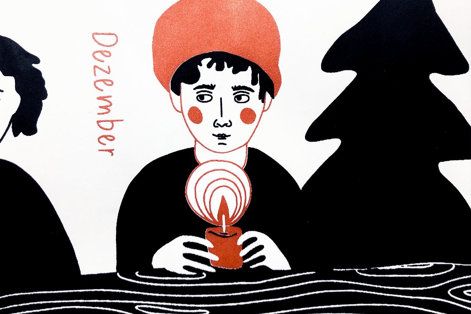Mit einer Freundin habe ich einen Kalender designt und im Siebdruckverfahren gedruckt.