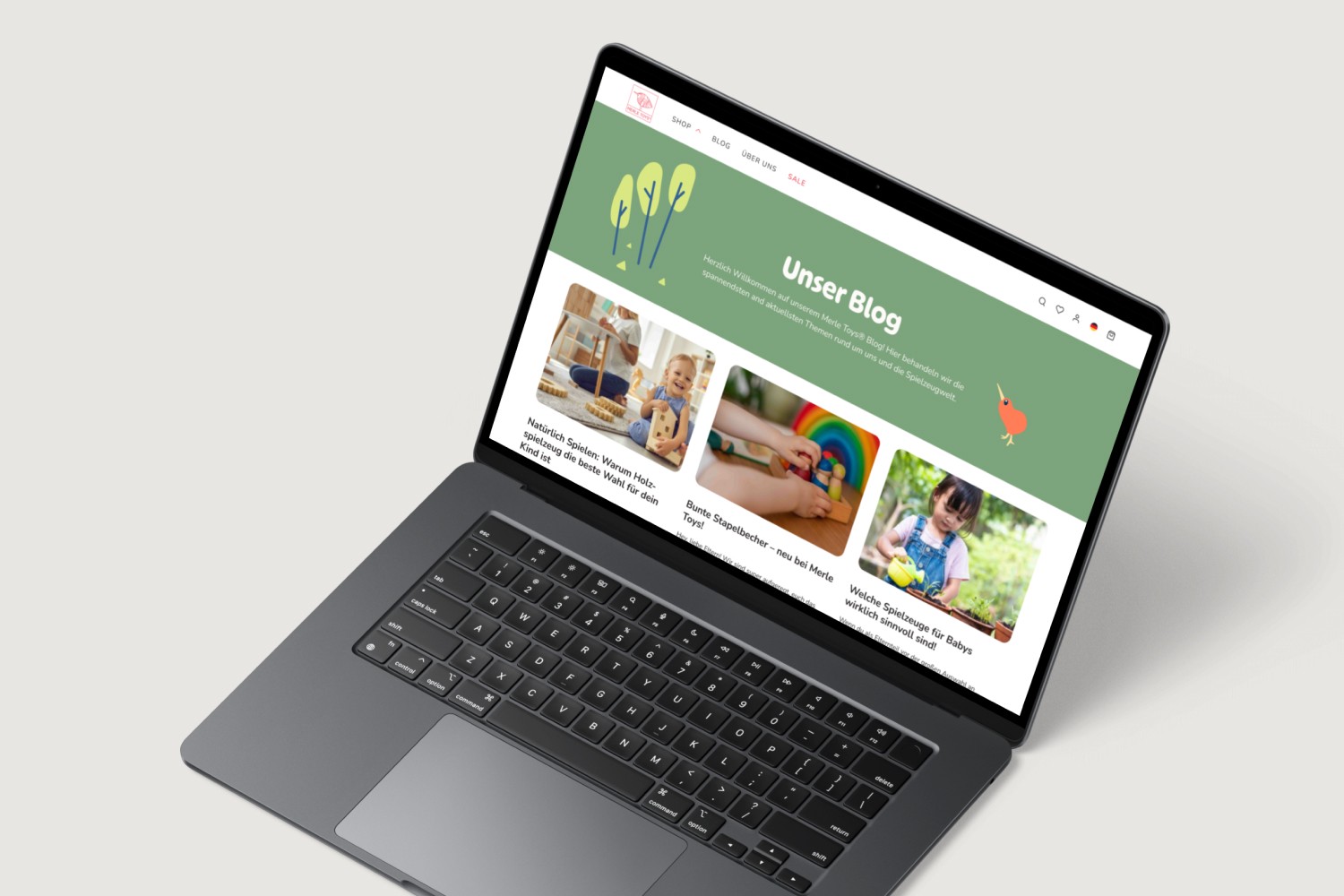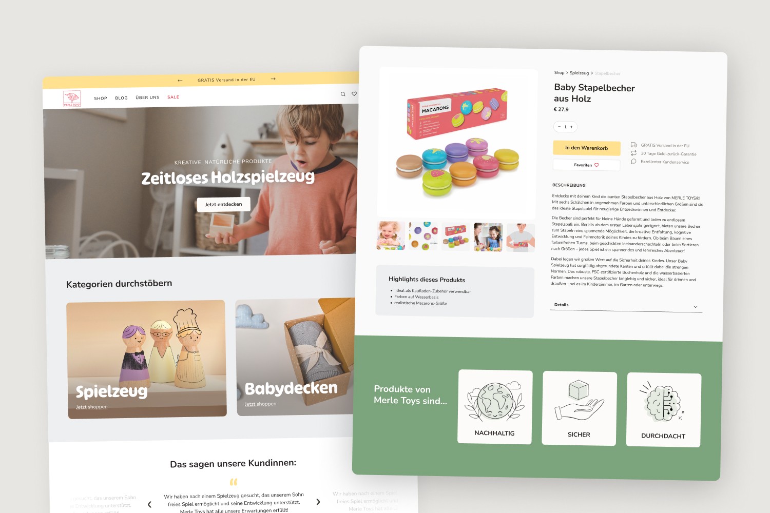 Während meiner Mitarbeit für Merle Toys arbeitete ich unter anderem an Verpackungen, Webdesigns, Icons und Illustrationen – abgestimmt auf die Werte der Marke.