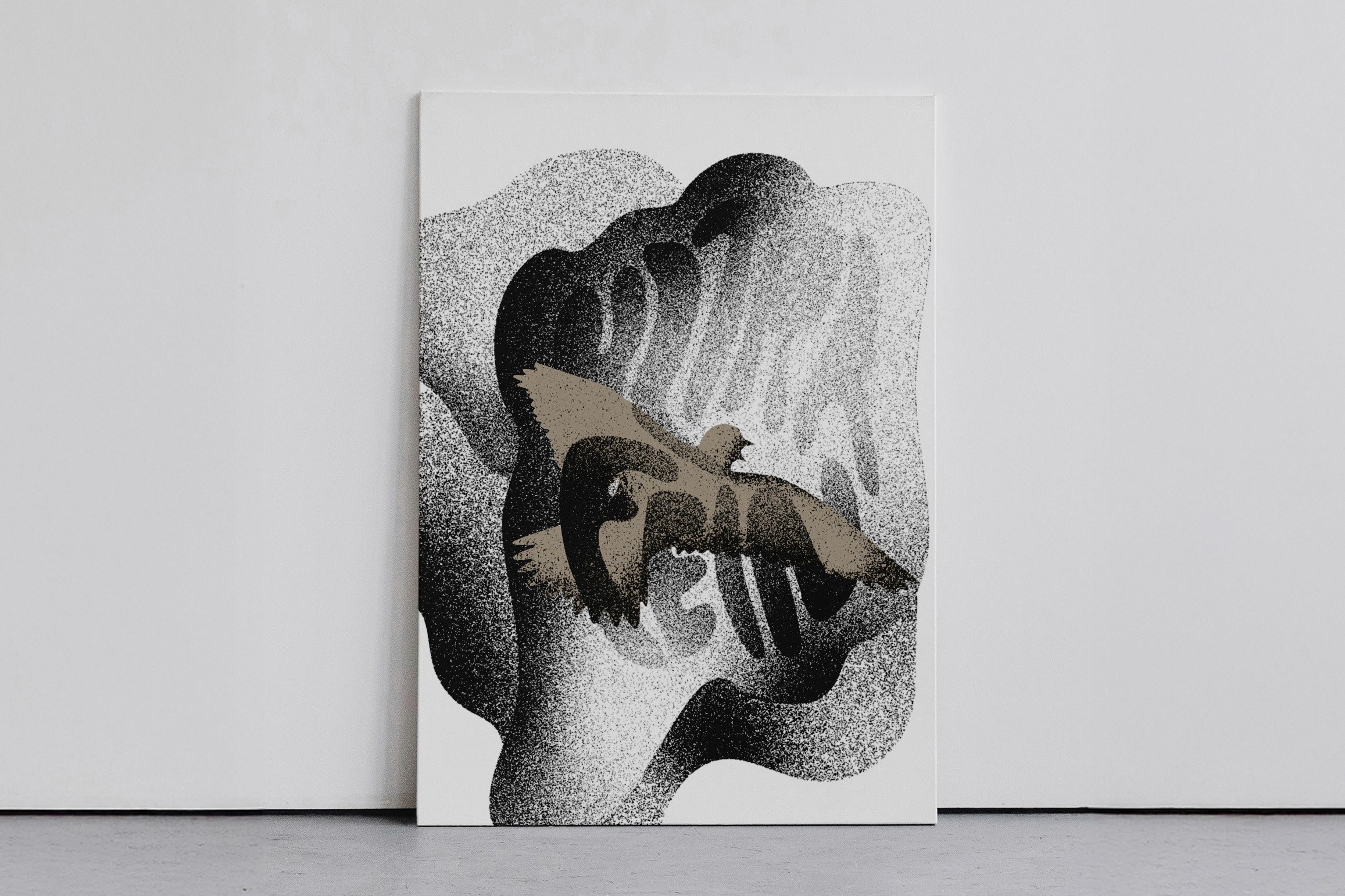 „Ultrafein“ – ein Plakat über Luftverschmutzung und gefährlichen Ultrafeinstaub. Die Illustration bezieht sich auf eine Studie, die 135 Jahre Luftqualität im US-Rostgürtel anhand von Vogelfedern untersuchte.