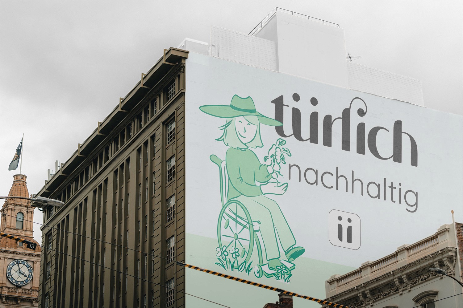 Die grafischen Elemente unterstützen diese Botschaft. Die bunten Formen zeigen abstrahiert die verschiedenen Bereiche (Interessen/Orte), die sich überschneiden und verbinden.